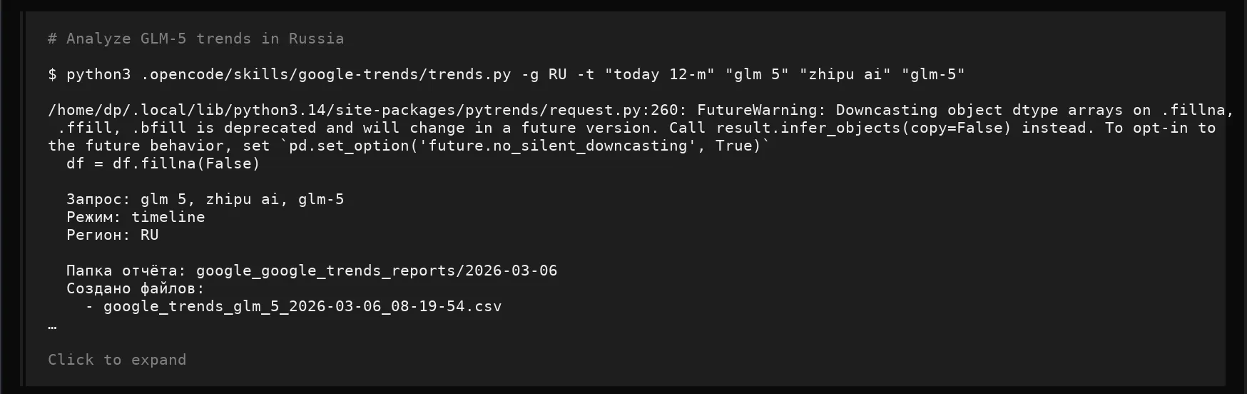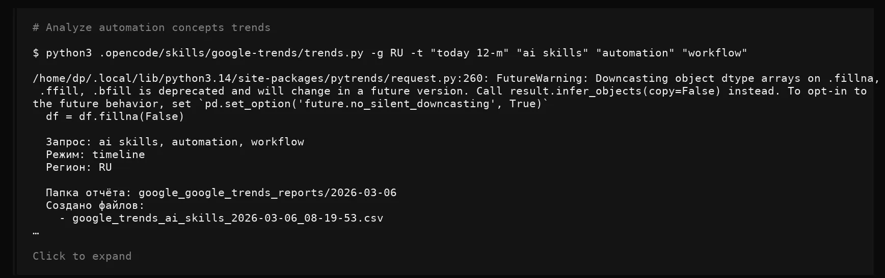 Результат: папки с отчётами — google_trends_reports/, yandex_metrika_reports, yandex_webmaster_reports