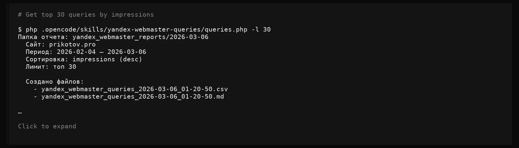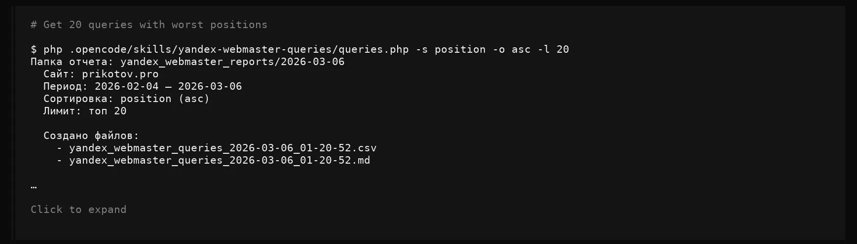 Сбор данных из Вебмастера (SEO-анализ):