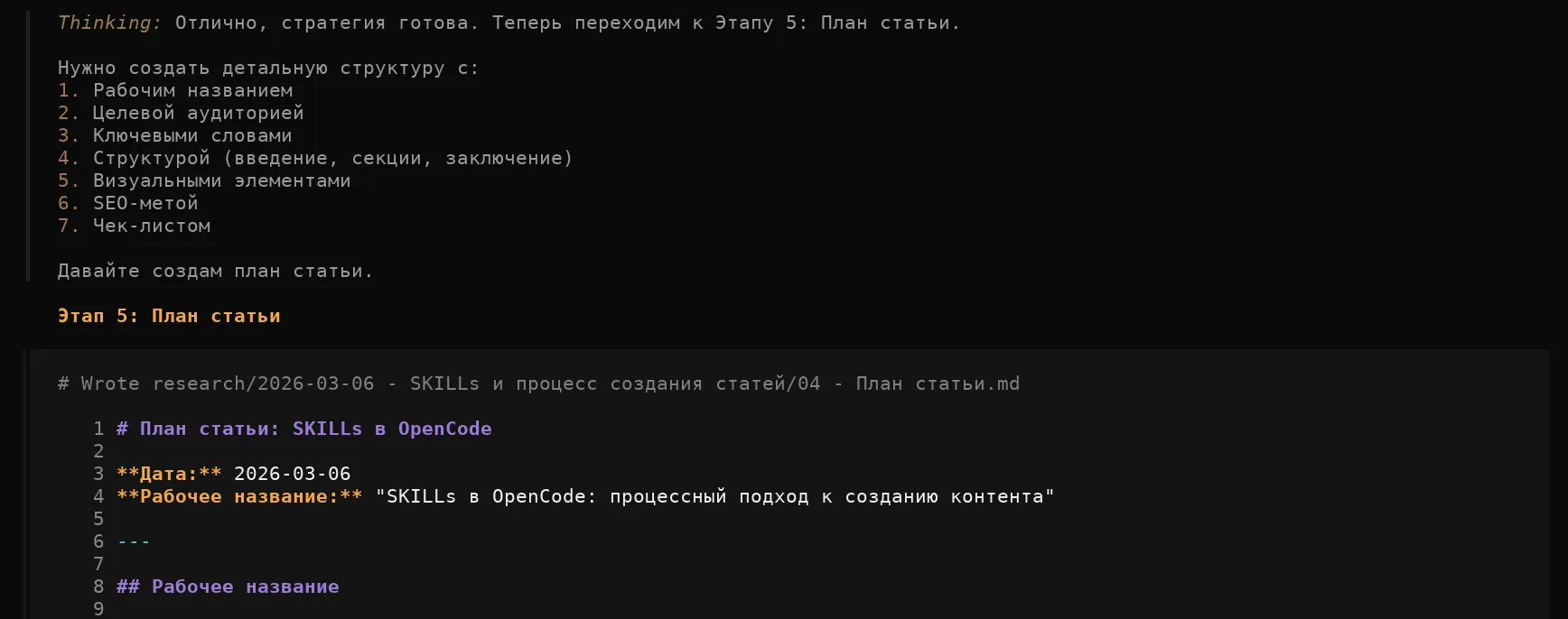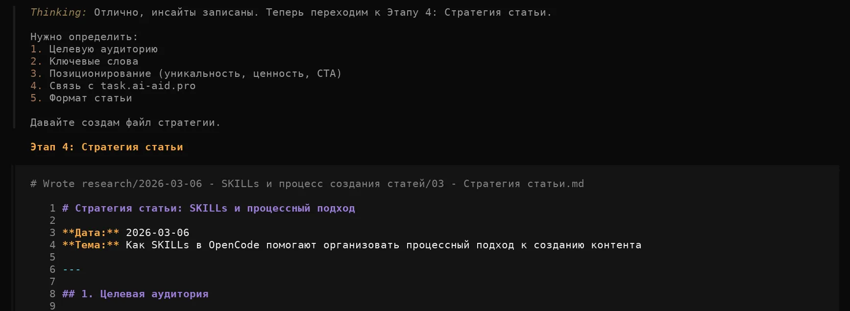 - Ключевые слова: SKILLs в OpenCode, процесс создания контента