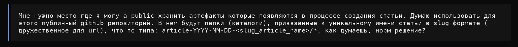 Для генерации кода у меня уже есть процесс: task-agents-playbook. Качество кода устраивает, я чётко понимаю, что улучшать. И тут я подумал: а что если применить такой же подход к созданию статей?