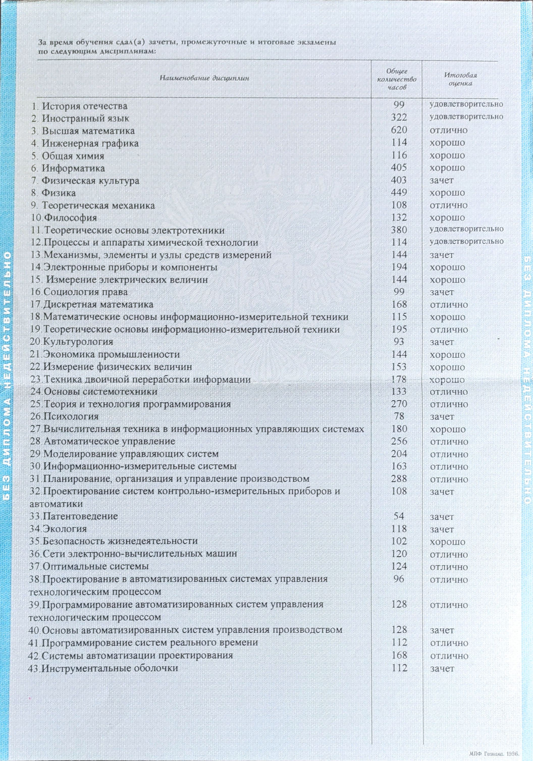 Выпускную дипломную работу защитил на отлично.