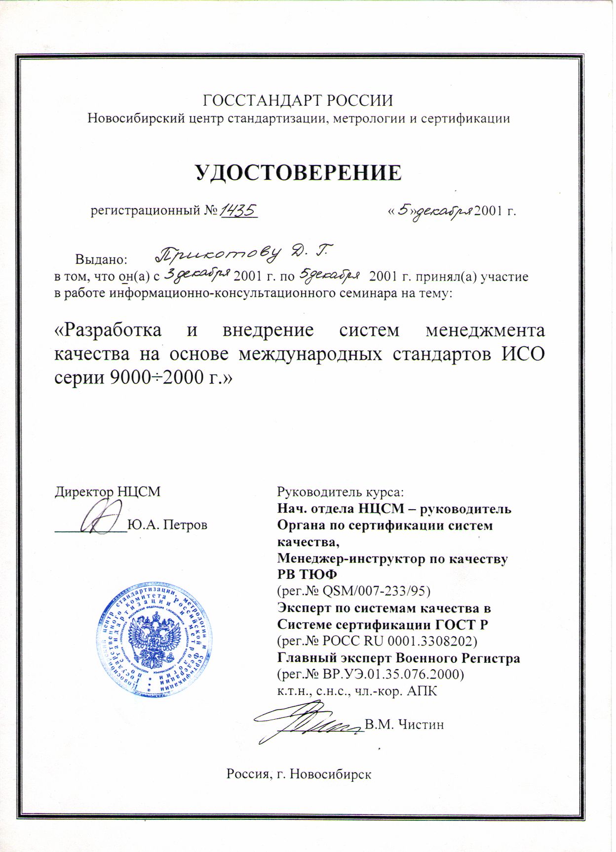 - участие во внедрении системы управления качеством предприятия ISO9000