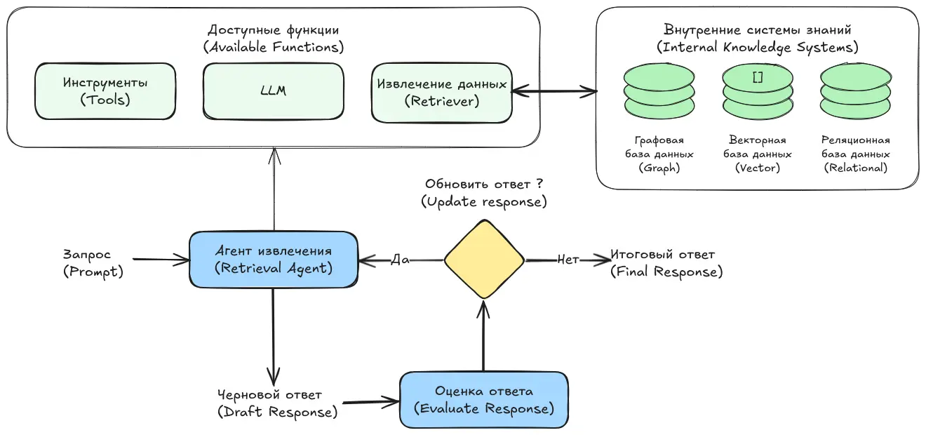 - Эти данные добавляются в контекст, передаваемый LLM при формировании запроса.