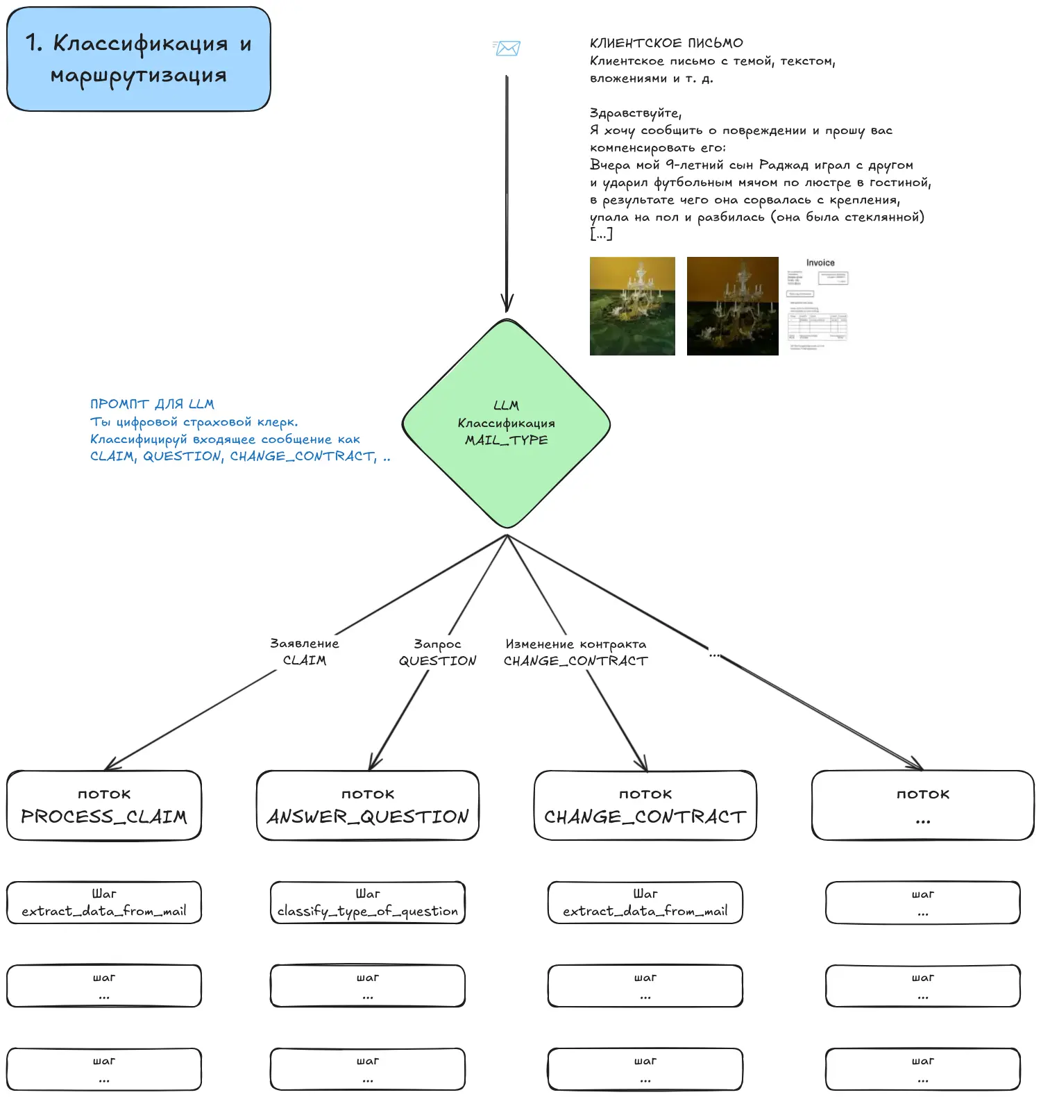 ИИ-агенты: 1. Классификация письма и маршрутизация в различные потоки обработки: