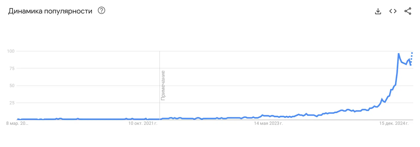 Популярность запроса "AI Agents" на Google Trends (trends.google.com):