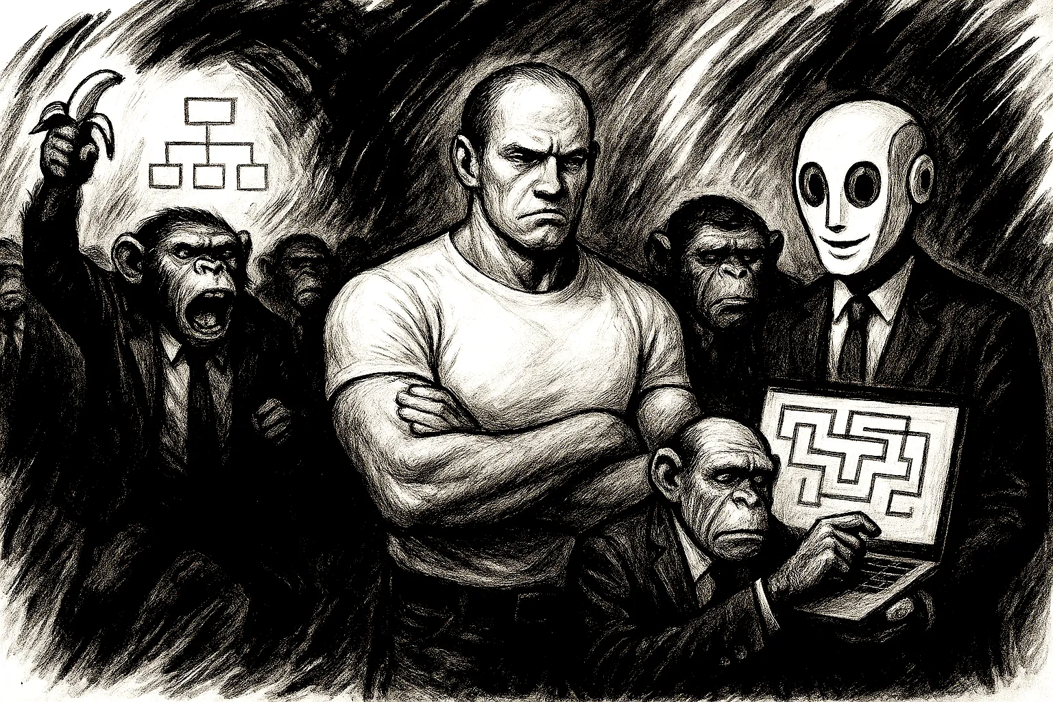 Дисклеймер: При создании этой статьи ни один менеджер-биоорганизм не пострадал, не подвергался жестокому обращению и не был вынужден обновлять таблицы после полуночи. Все упомянутые управленцы получали гуманное обращение, достаточное количество кофе-брейков и вполне разумные дедлайны.