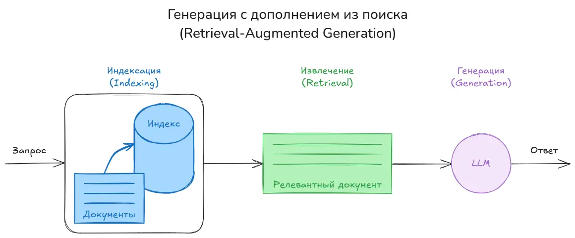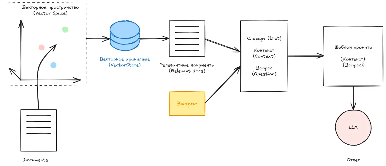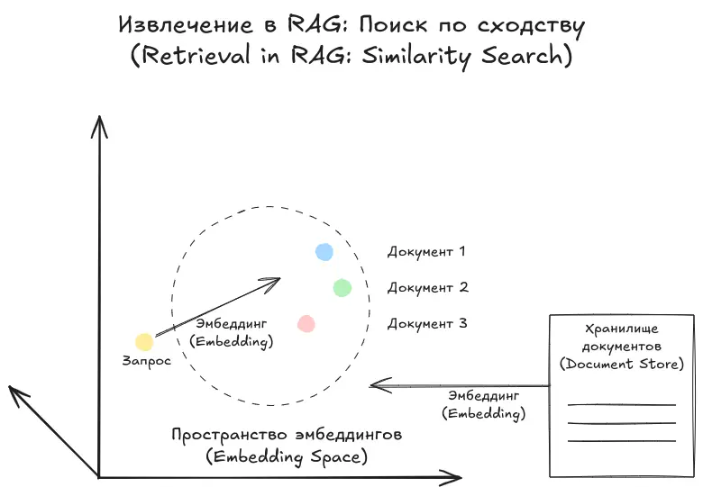 Проще говоря, мы преобразуем сам запрос в эмбеддинг и сравниваем его с эмбеддингами фрагментов, чтобы найти те, которые наиболее близки по смыслу.