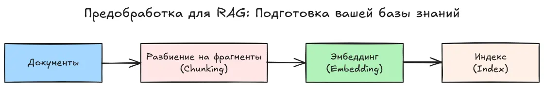 - Эмбеддинг: Каждый фрагмент текста преобразуется в числовое представление, отражающее его смысл. Это позволяет системе «понимать» содержимое и сравнивать его с другими фрагментами.